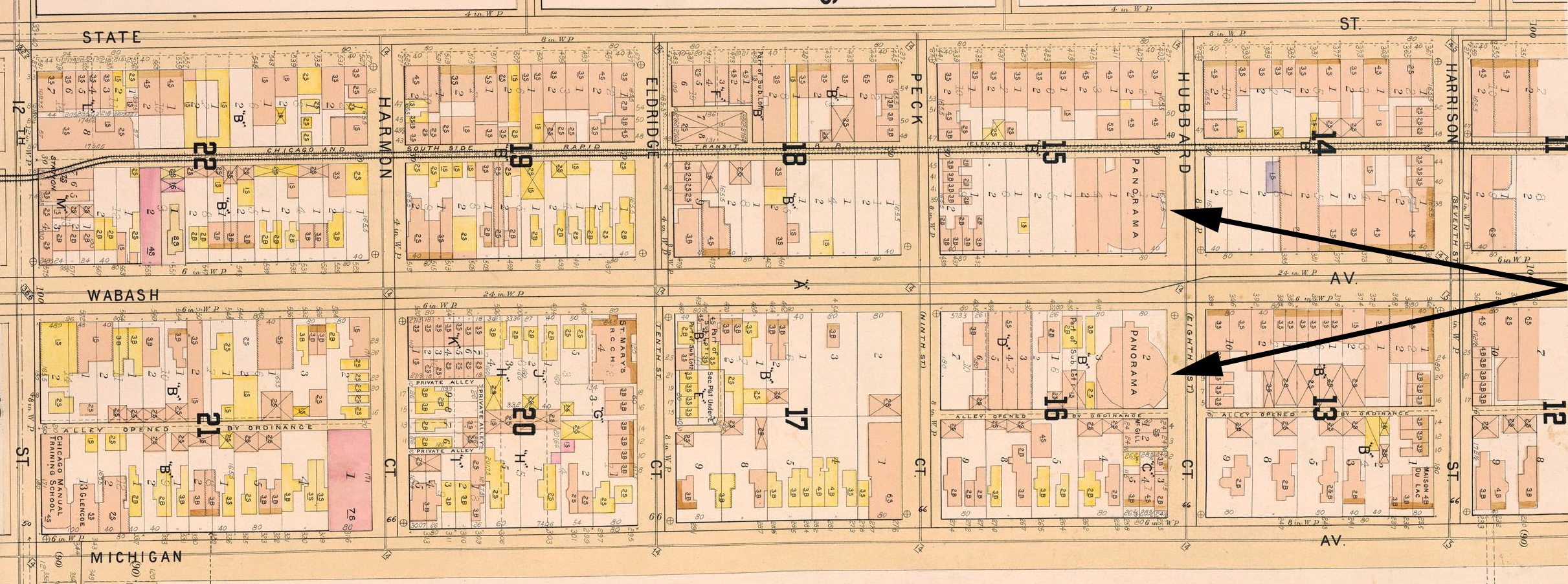 The American Panorama Company, which was recently incorporated with a capital of $200,000 by Franklin A. Wattriss and J. P. Breese, has been figuring on the property at the southeast corner of Hubbard court and Wabash avenue. This site, which is directly opposite the Gettysburg panorama, is about 150 feet front on Wabash avenue and has a depth of 175 feet to the alley, is owned by Mr. Byron L. Smith, who is now in Europe. The new Panorama Company bas been figuring for a lease of this property, which is amply large enough for the proposed building, but it is quite certain that no lease bas been signed yet. The lot is occupied by two one-story brick stores on the corner and two two-story brick stores adjoining on the south. The occupant of one of the larger stores informed a Tribune reporter last evening that he had heard it intimated that the property was to be leased over them, but he had received no formal notice to vacate. Later he had heard that the company had secured a site for their building on the North Side. He bad a conditional two years’ lease of his building, and would expect to be reimbursed for improvements made if he was forced to vacate. He did not believe the other tenants had leases.