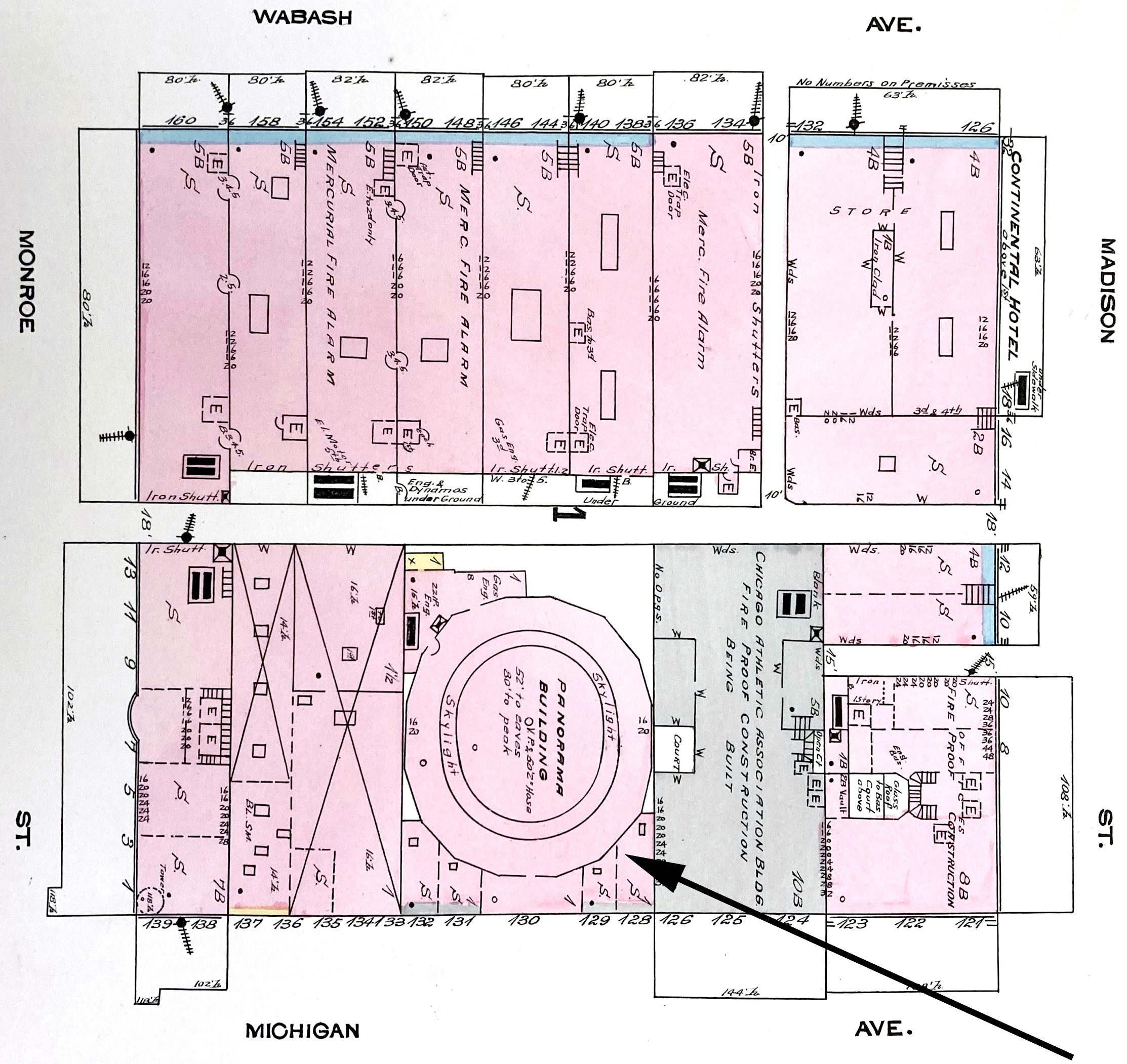 At 127-132 Michigan Avenue, receives some description and comment in our chapter on “Amusements.” The building was erected in 1892, and occupies a lot 120 feet wide by 180 feet deep. The height is 60 feet. It is said that 144,000 people view the circular painting each year.