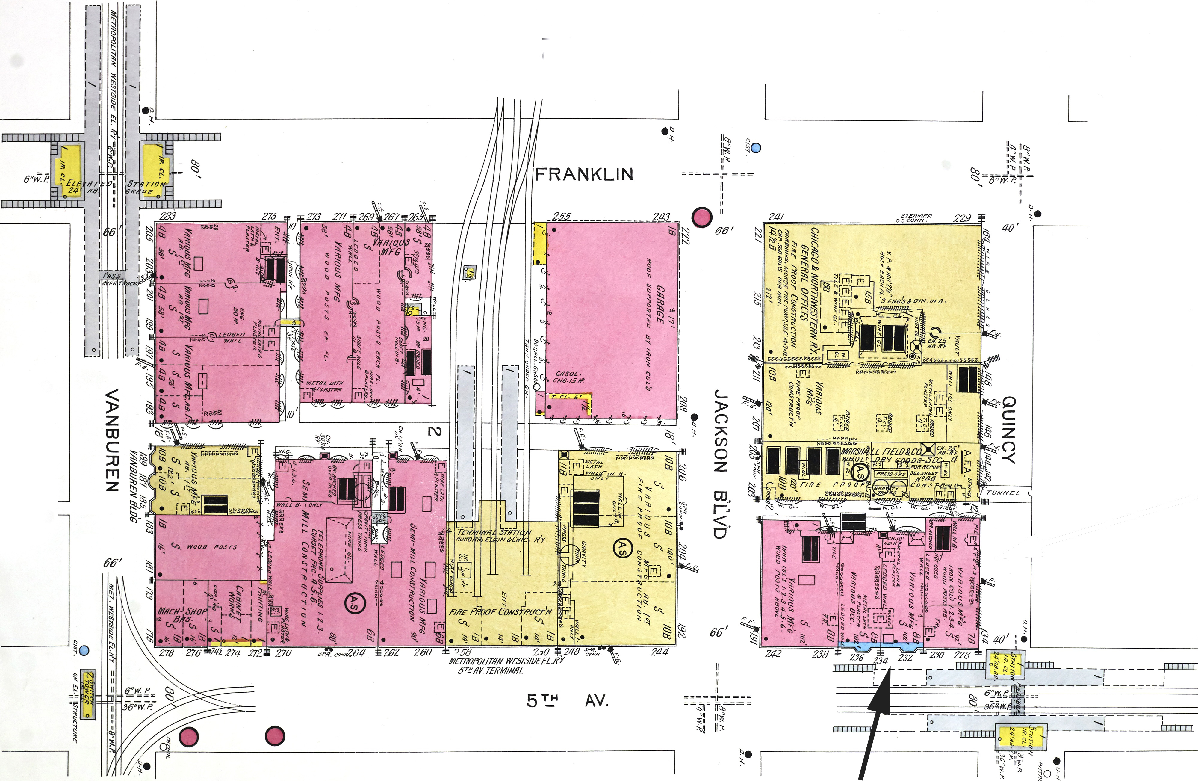 Location: Near Southwest corner Fifth Avenue (Wells) and Quincy