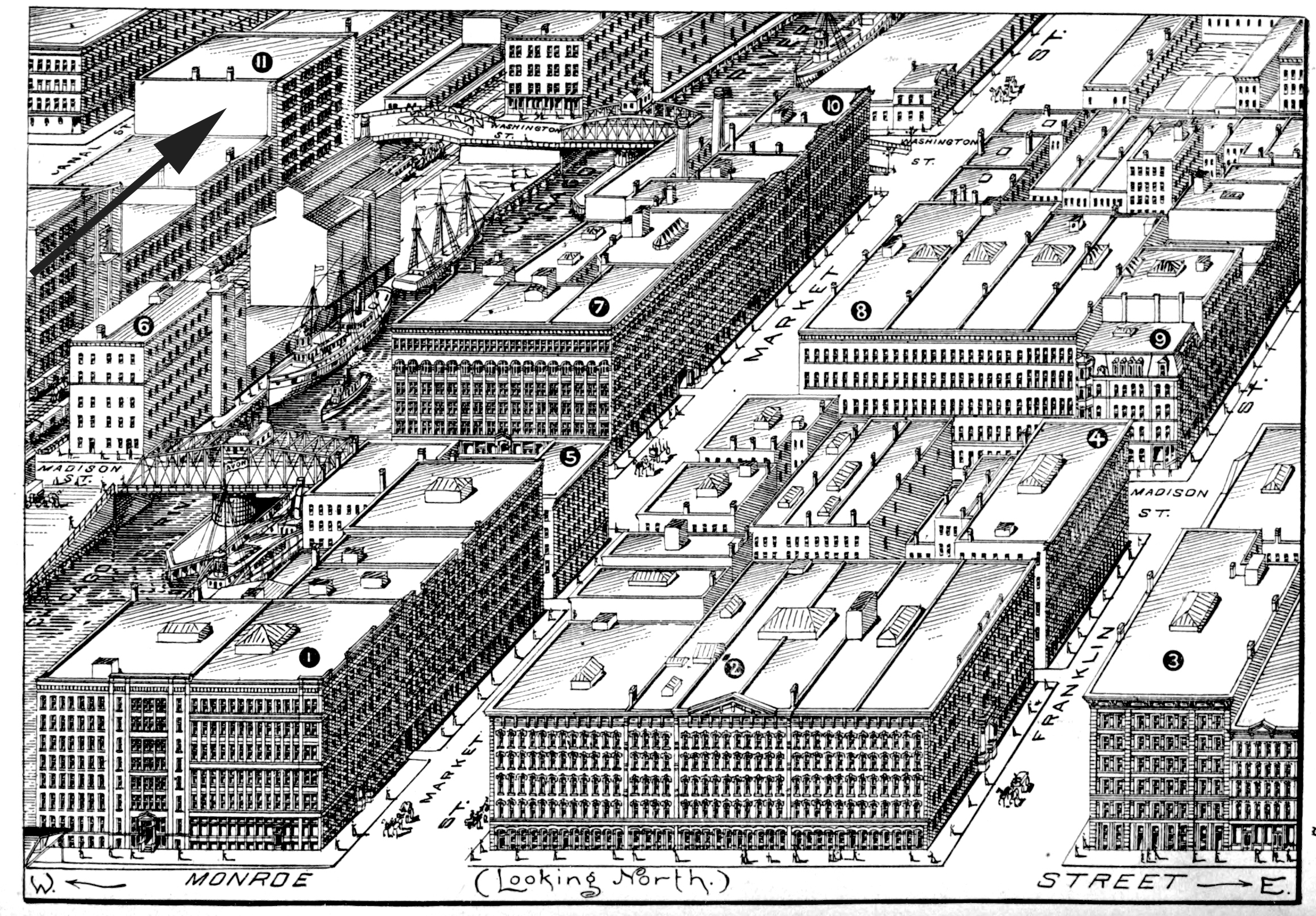 Location: Southeast corner Washington and Canal, 38-44 S Canal, site of Chicago & Northwestern Depot