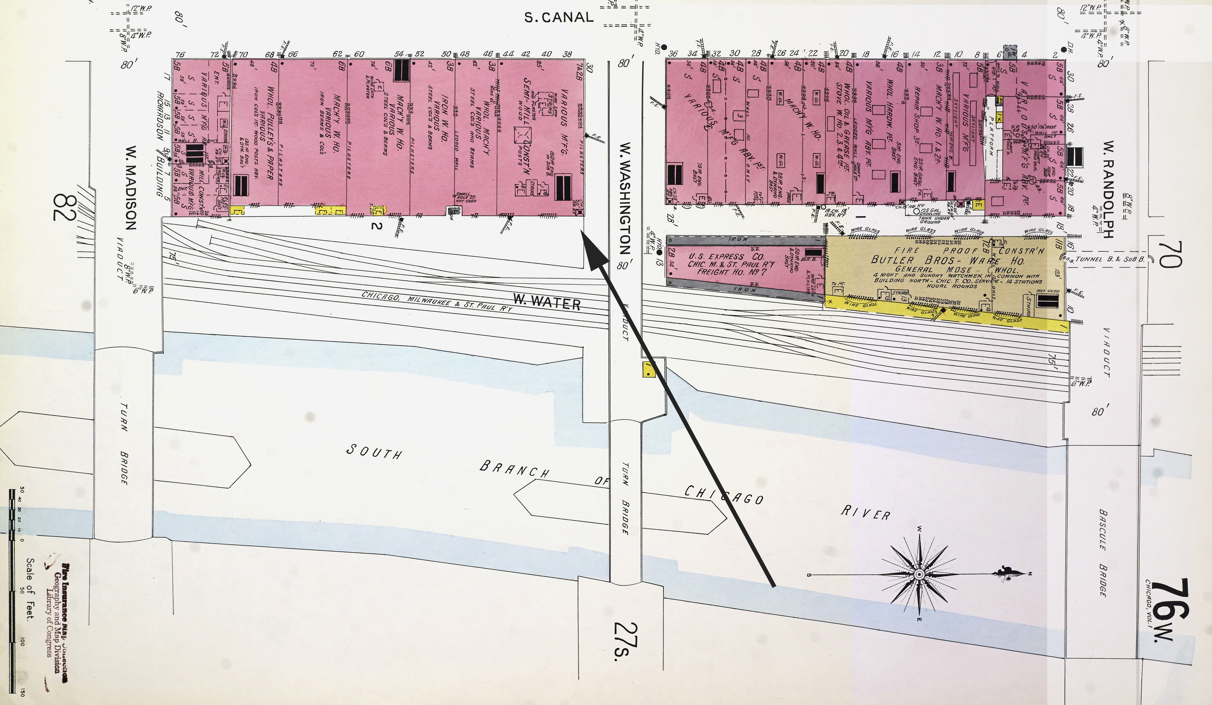 At the southeast corner of West Washington and South Canal streets, can be seen only from the rear, but is here mentioned because it was erected as lately as 1892. Its dimensions are 120 feet on Washington, 80 feet on South Canal; height, 95 feet, with 7 stories and basement. The exterior is brick, stone, and iron. There are 2 freight elevators. It is occupied by manufacturers.