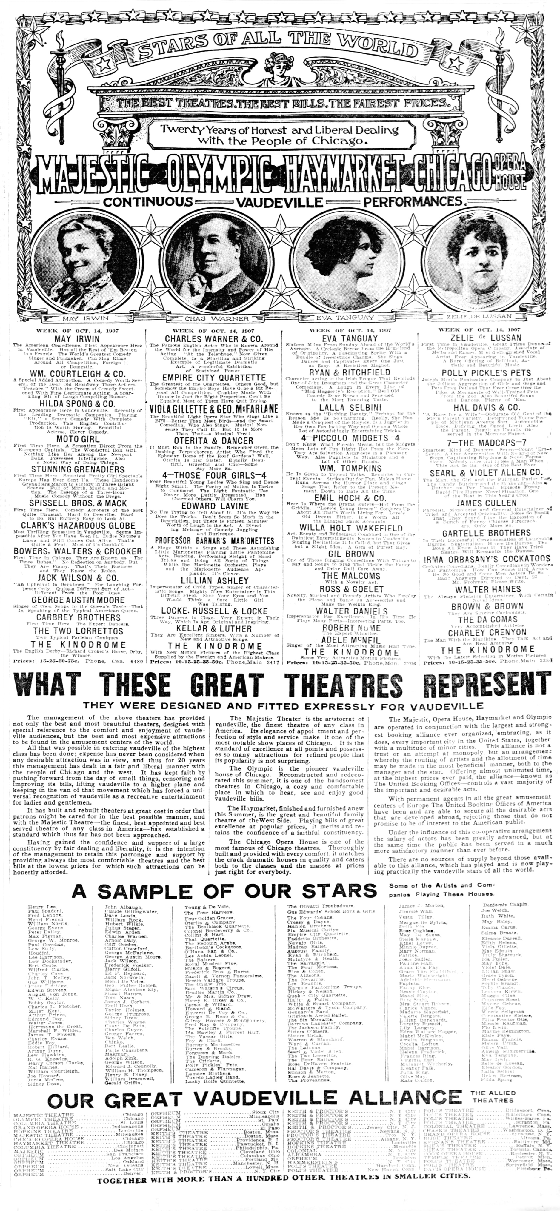 Kohl & Castle Amusement Co props Chicago opera house 109 W Washington Haymarket theatre 724 W Madison Majestic theatre 18 W Monroe and Olympic theatre 74 W Randolph