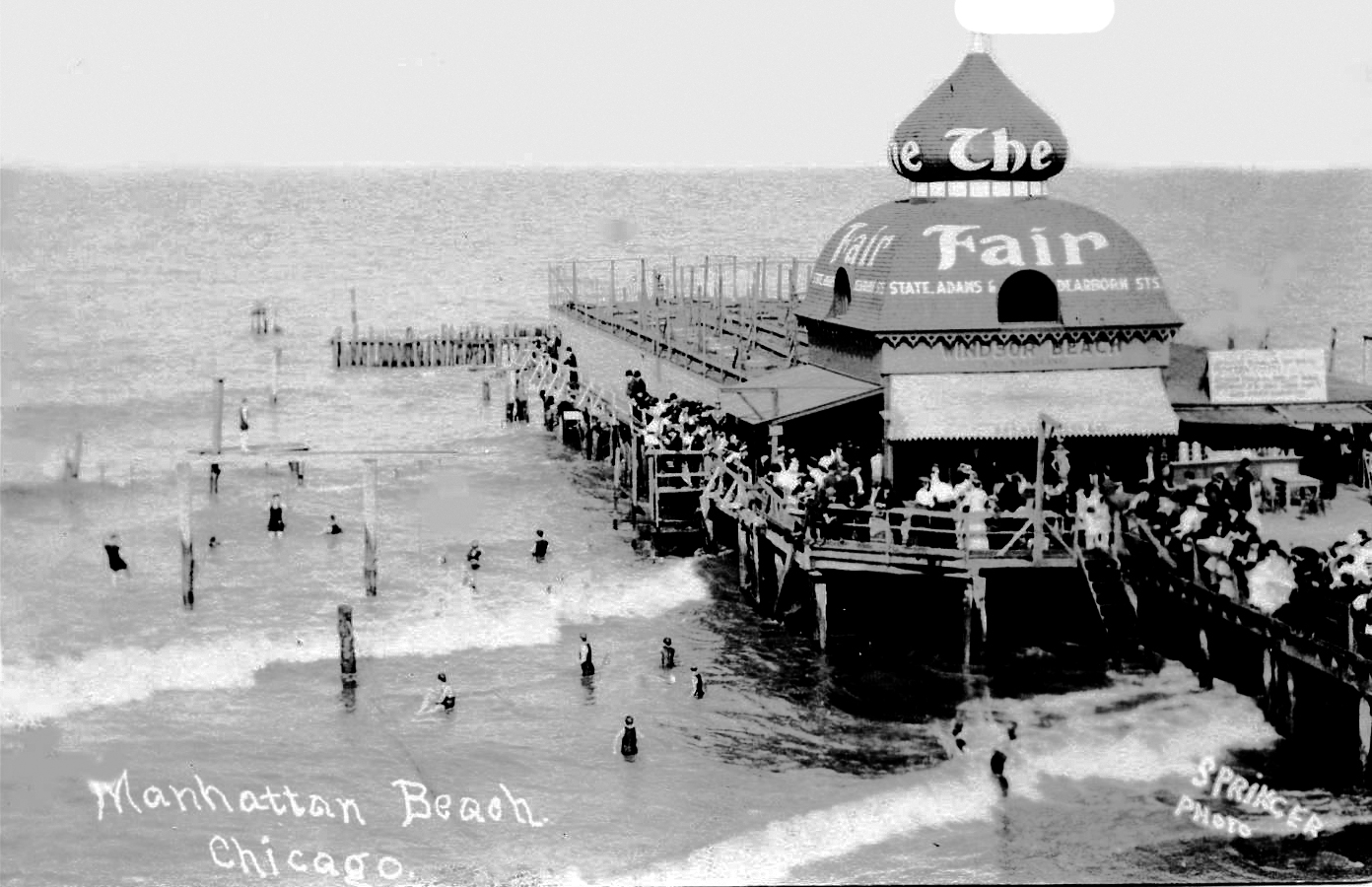 In 1894 Chicago’s first public beach opened in Hyde Park at Windsor Park. It was called Manhattan Beach (later Rainbow Beach). This beach was a resort owned by hotels, clubs and other private enterprises, and typically frequented by wealthy, upper-class residents. Chicago’s first municipal beaches opened beginning in 1909.