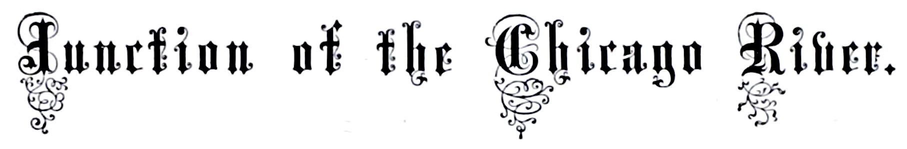Chicago River.—This view is of that portion of the river where the two branches unite and form the main river. The drawing is taken from a point on West Water Street, north of the approach to Lake Street Bridge.