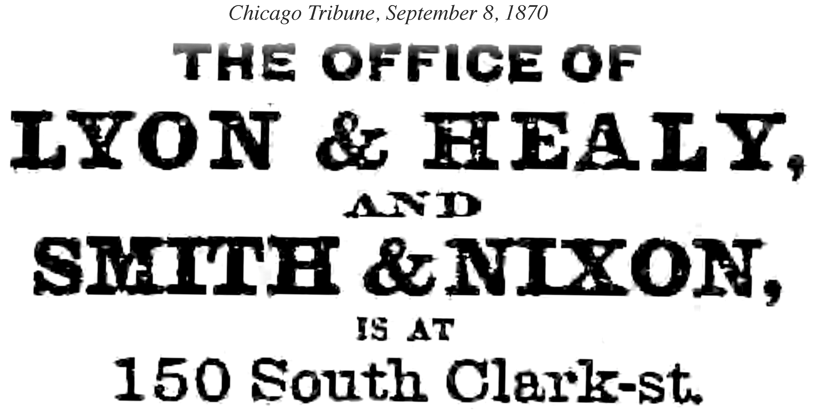 Lyon & Healy (George W. Lyon and Patrick J. Healy), music publishers and musical instruments generally, 114 Washington and 116 Clark
