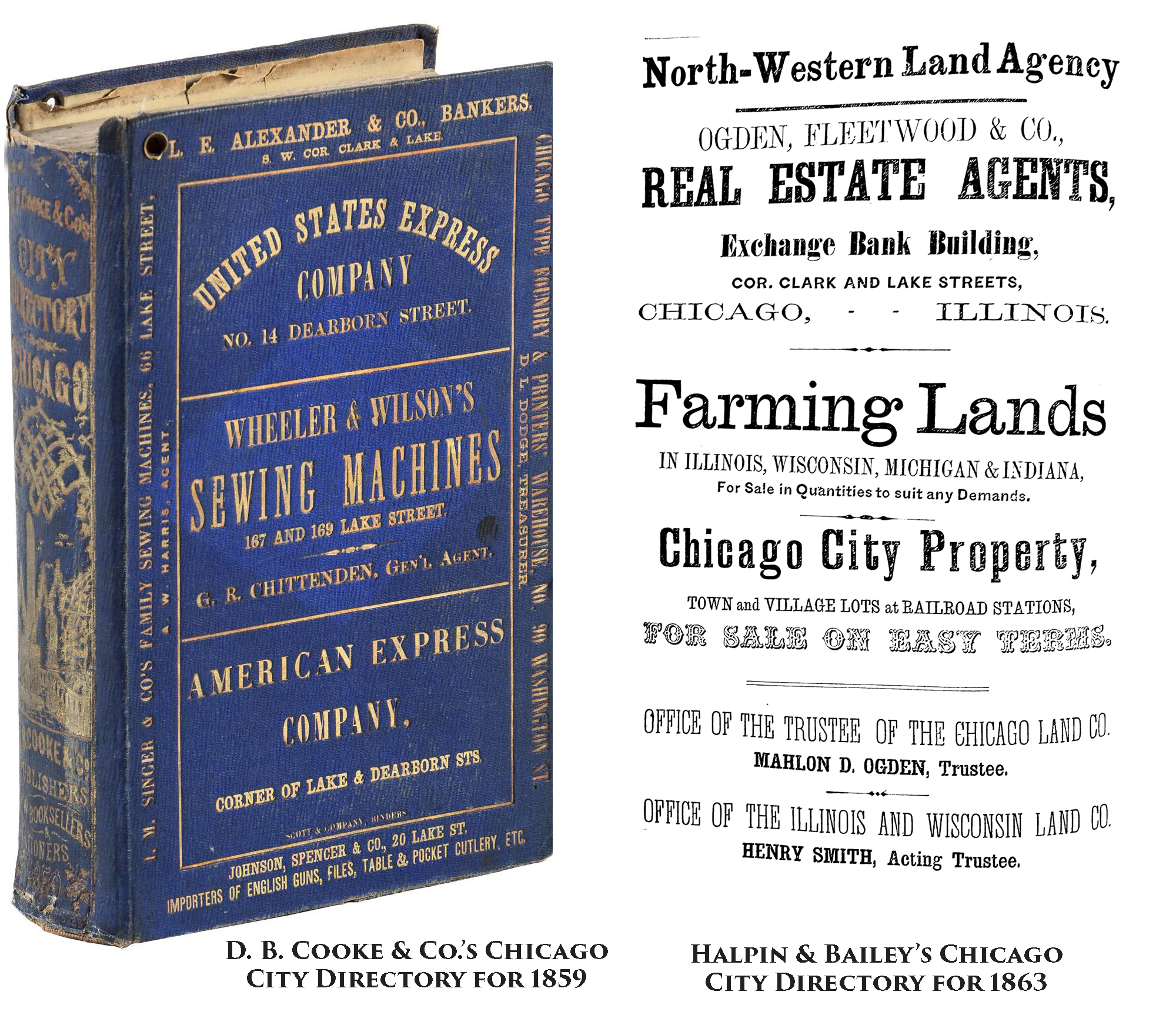 Ogden, Fleetwood, & Co. (William B. Ogden, Mahlon D. Ogden, Edwin H. Sheldon and Stanly H. Fleetwood,) Northwestern land agency, 32 and 34 Clark. (See advt. op. page)