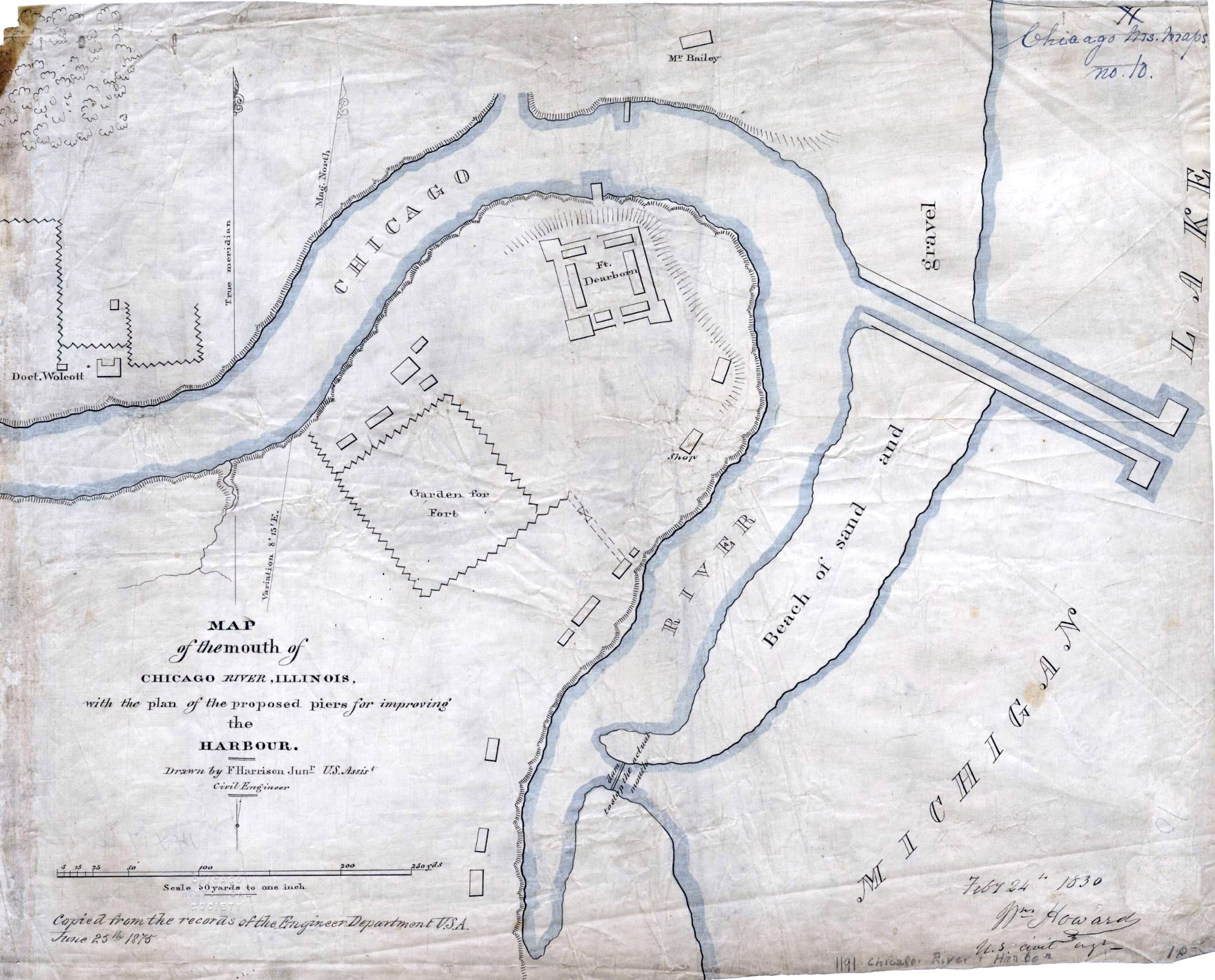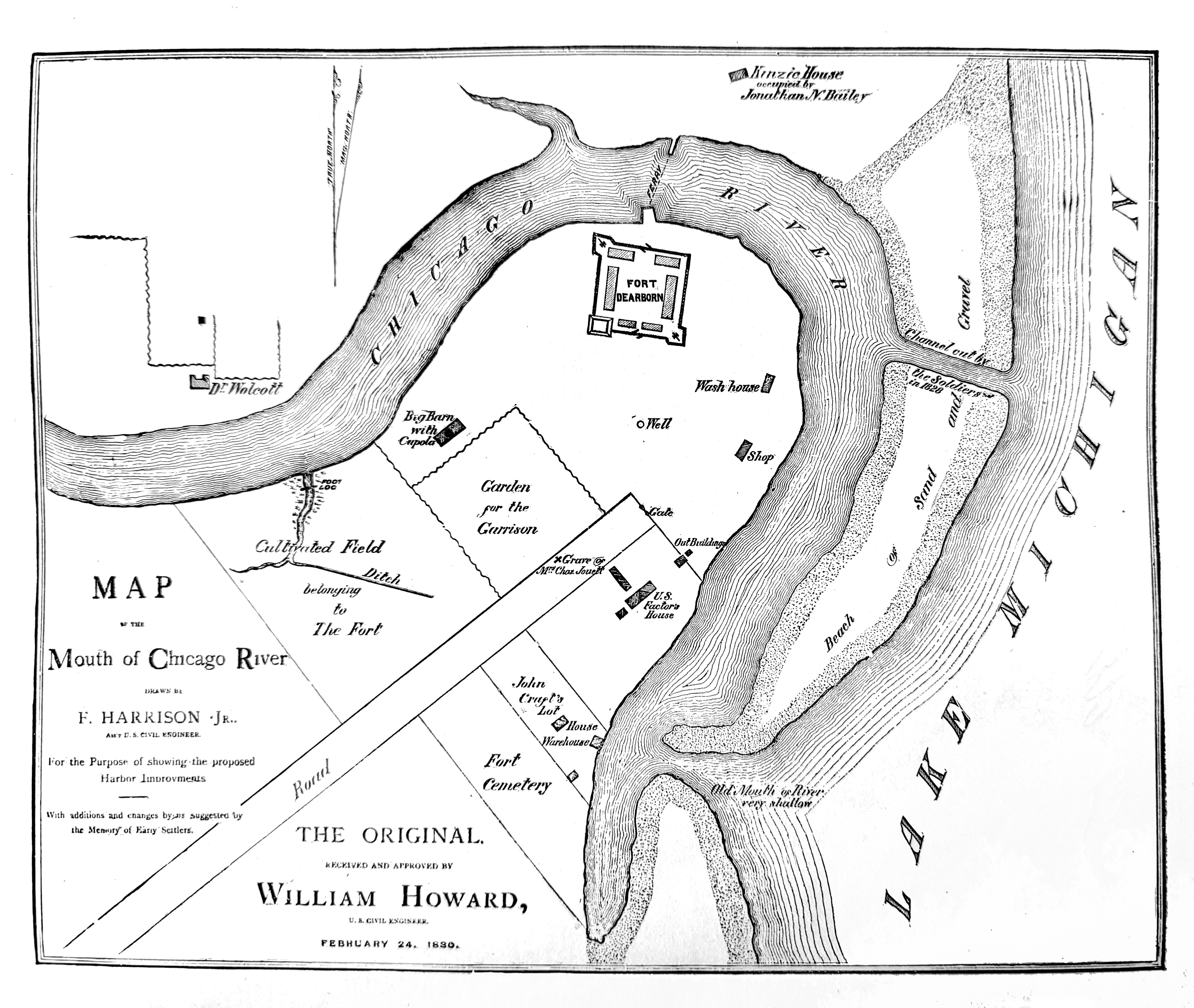 The same year in which the Indian title to the territory about Chicago, (in addition to the tract of six miles square ceded by the treaty of 1795,) and extending to the Illinois river, was extinguished, the troops returned again to this locality, and the new fort was erected. This re-ocupation, took place July 1, 1816, near four years after its destruction at the time of the massacre. Capt. Hezekiah Bradley was the commander. Under his direction the fort was erected. It stood upon the same ground as the fort of 1804, which had been burnt by the Indians. It was the same venerable structure, that has stood until recently the only special object of antiquarian interest, of which Chicago could boast. Most of the citizens of Chicago, from the time of their first appearance on this theatre, up to within three or four vears past, were of course familiar with old Fort Dearborn. It is not long ago, since all the ground east of State street, known as the Reservation, was an open common, occupied by the buildings at the Fort and the light house, and a few “old settler residences”-and we all know what a distinguished mark was the old Fort. But the progress of improvement and the extension of business, swept the old relies away-and it was only as late as the summer of 1856, that the principal part of the buildings, including the quarters of the officers, and the barracks of the soldiers, were torn down; and the block house, the most attractive object of all, within a few weeks has been completely demolished.