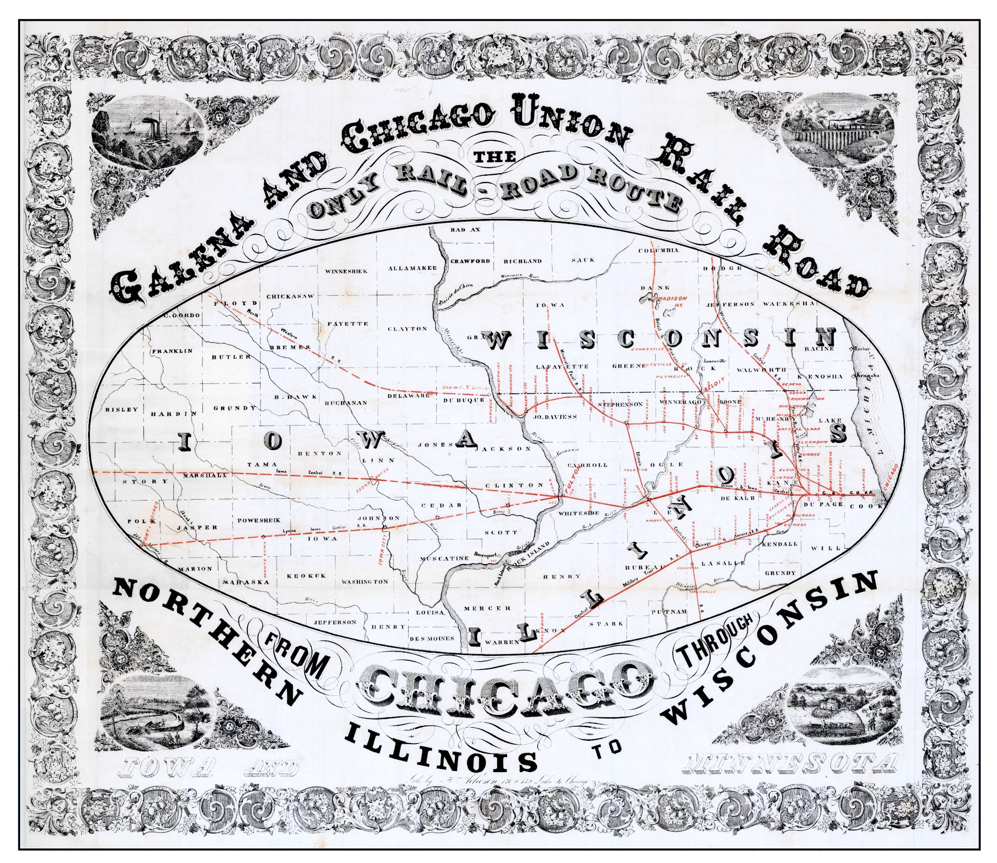 In 1851 the Galena & Chicago Union Railroad began to purchase depot grounds east of the North Branch of the Chicago River, and in 1852 and 1853 built on the plans of and under the superintendence of J. D. Perkins. In those days a street ran along and not far north of the main Chicago River, and was named North Water Street.
