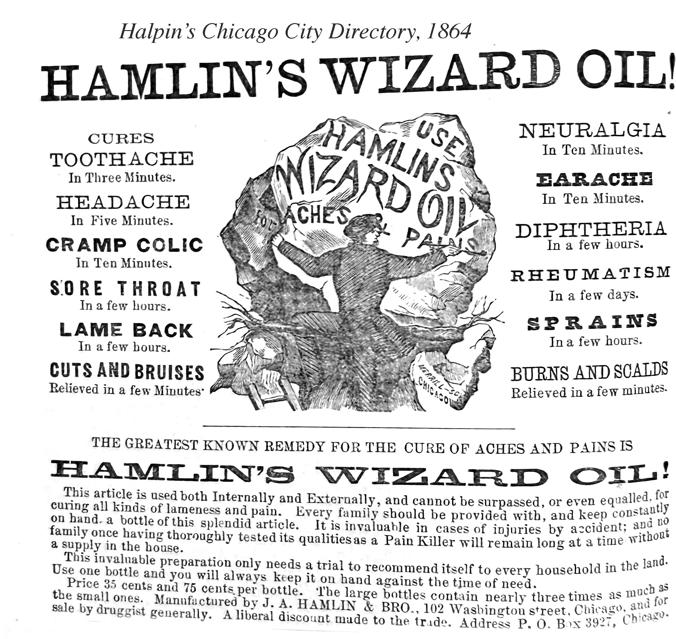 Hamlin J. A. & Bro., (John A. and Lysander B. Hamlin,) props.and mfrs. Hamlin’s Wizard Oil, 49 Franklin