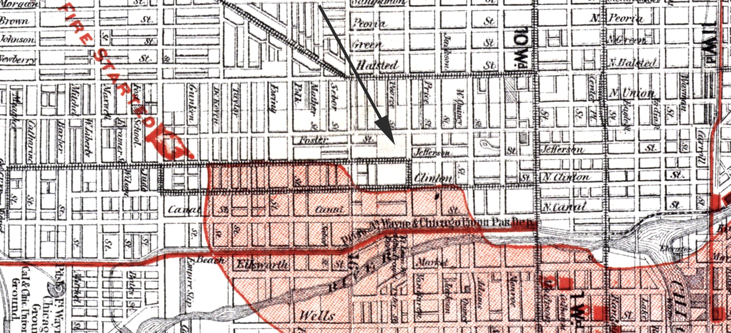 Collins & Burgie, (James L. Collins and Henry C. Burgie,) stove works, S. Jefferson, s.w. cor. Vanburen.