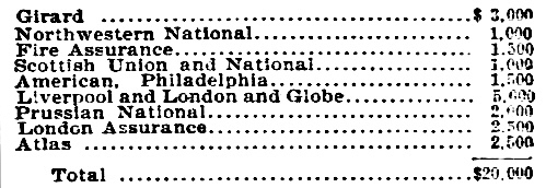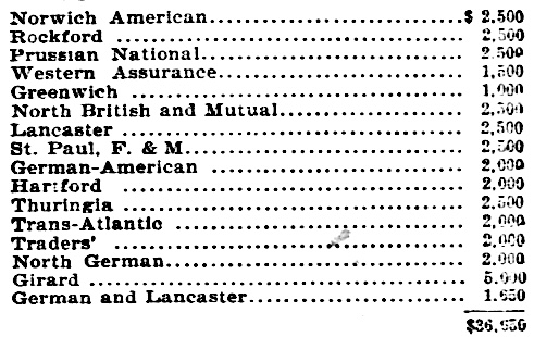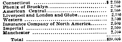 The National India Rubber Company, W. E. Hermnoyer, manager, carried $20,000 insurance, placed in the following companies: