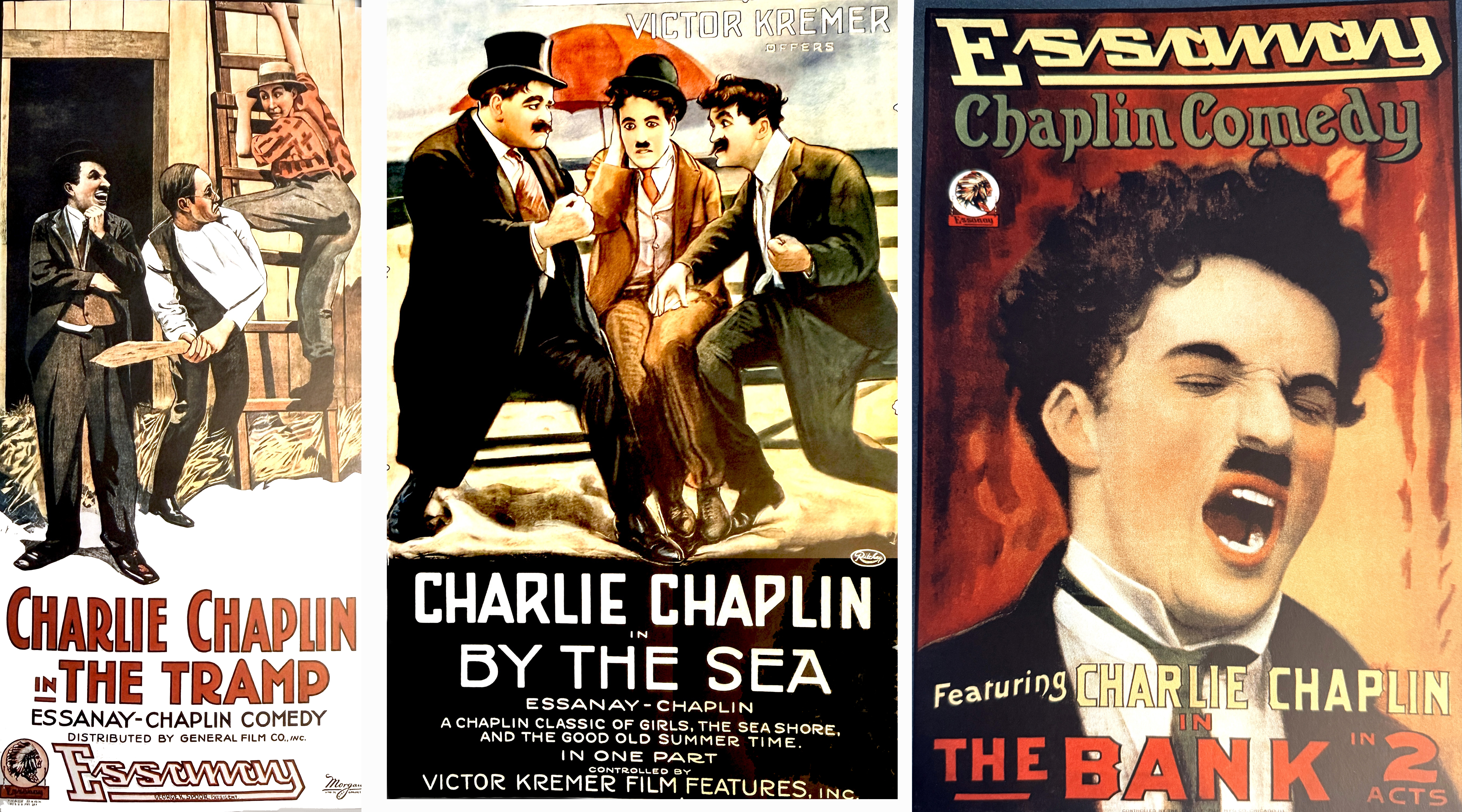 - Chaplin made 13 films with Essanay and signed with Mutual Film Corporation on February 26, 1916. Essanay, however, was still able to release five additional films under the Essanay trademark. By editing three of Chaplin’s films (The Tramp, His New Job and A Night Out) they created the five-reel Chaplin Revue of 1916. A UK-based Essanay employee, Longford Reed, edited together scenes from Chicago’s Essanay films and added rhyming intertitles, to create Chase Me Charlie. Triple Trouble was made from abandoned Chicago films.