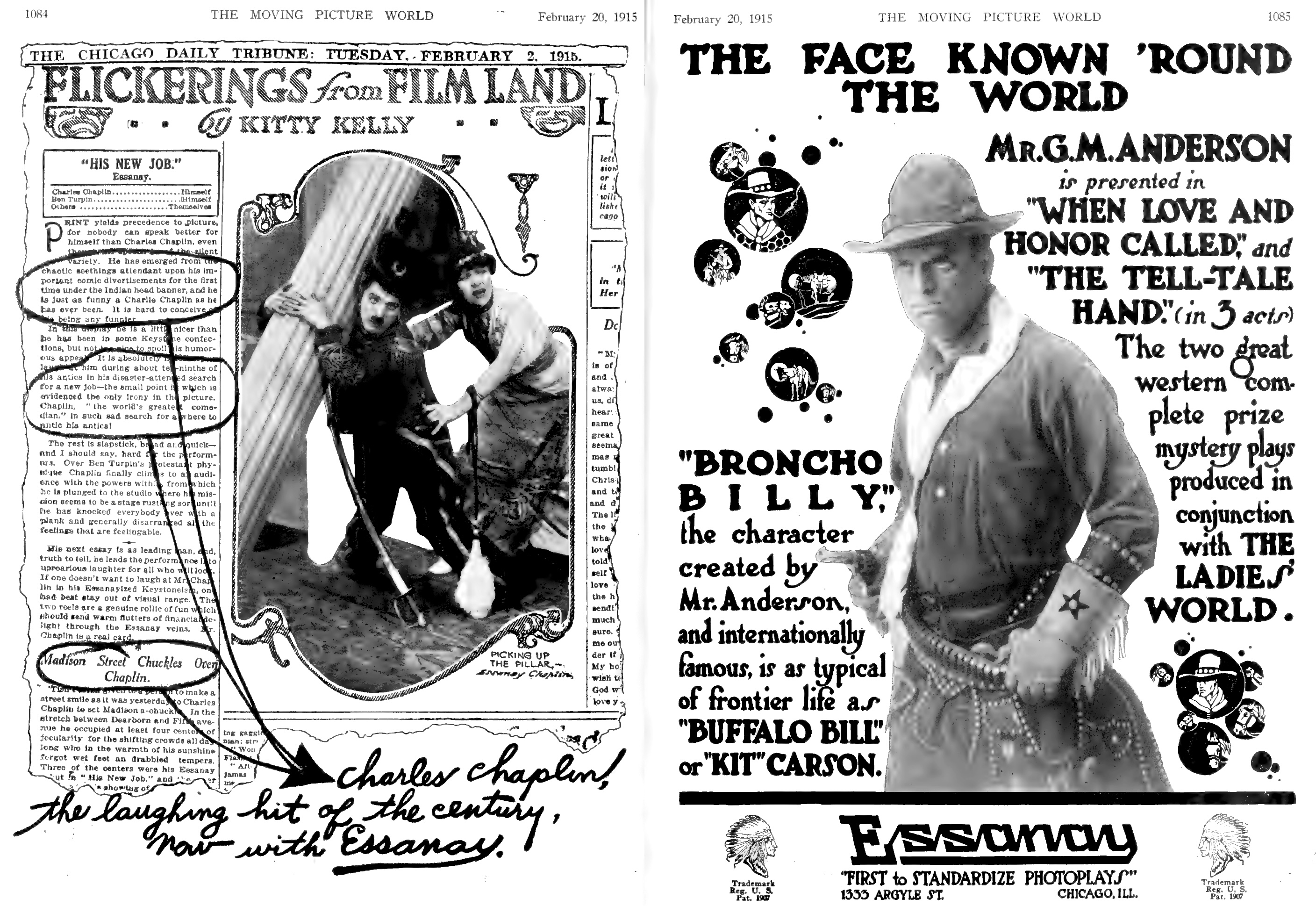 - Ben Turpin and Charlie Chaplin face off in “His New Job”, made in 1915. It was the only Essanay film that Chaplin shot in Chicago. The city was a major center for silent film production before the industry relocated to California.