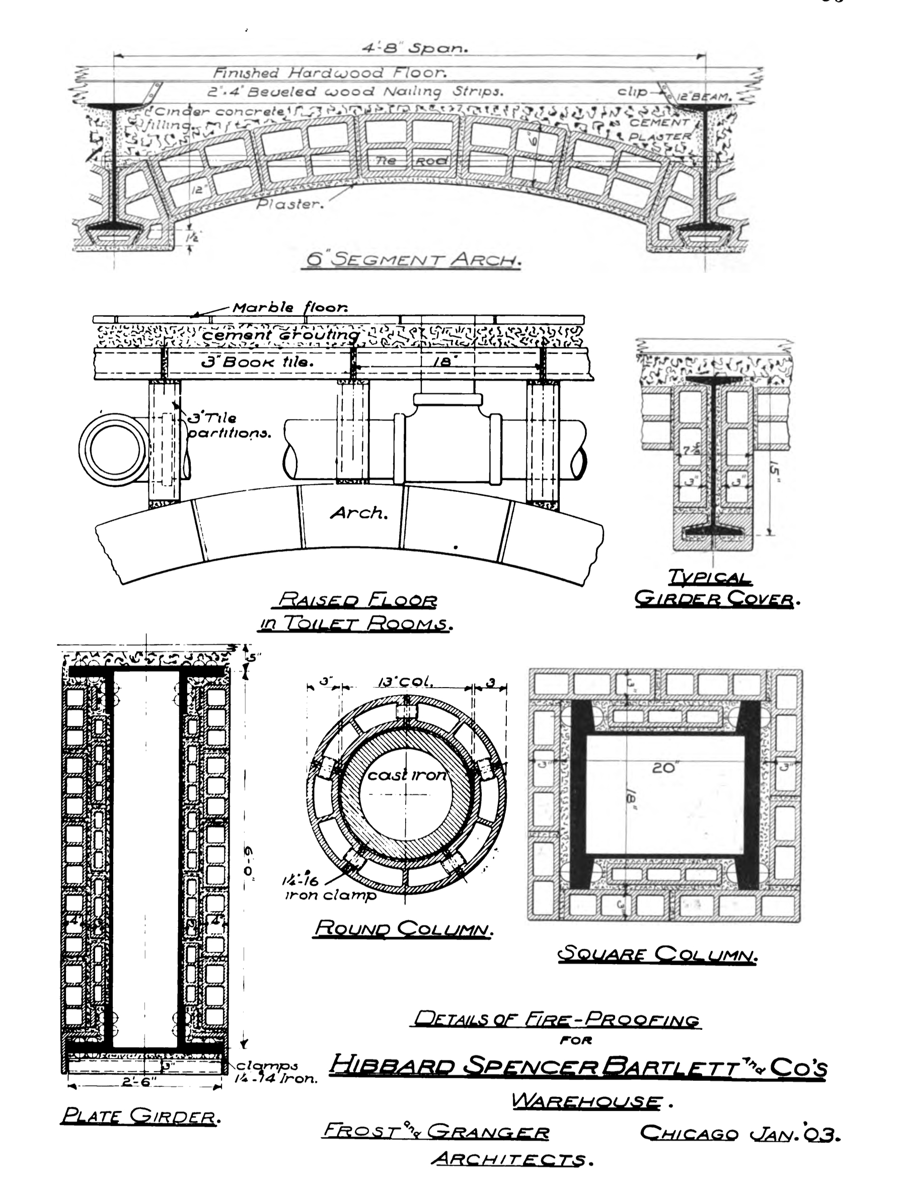 This Hibbard, Spencer, Bartlett building may be considered one of the best examples of a fireproof building extant, for in its construction the greatest care and discrimination has been exercised in the selection of the fireproofing materials and in their application and in the construction throughout.