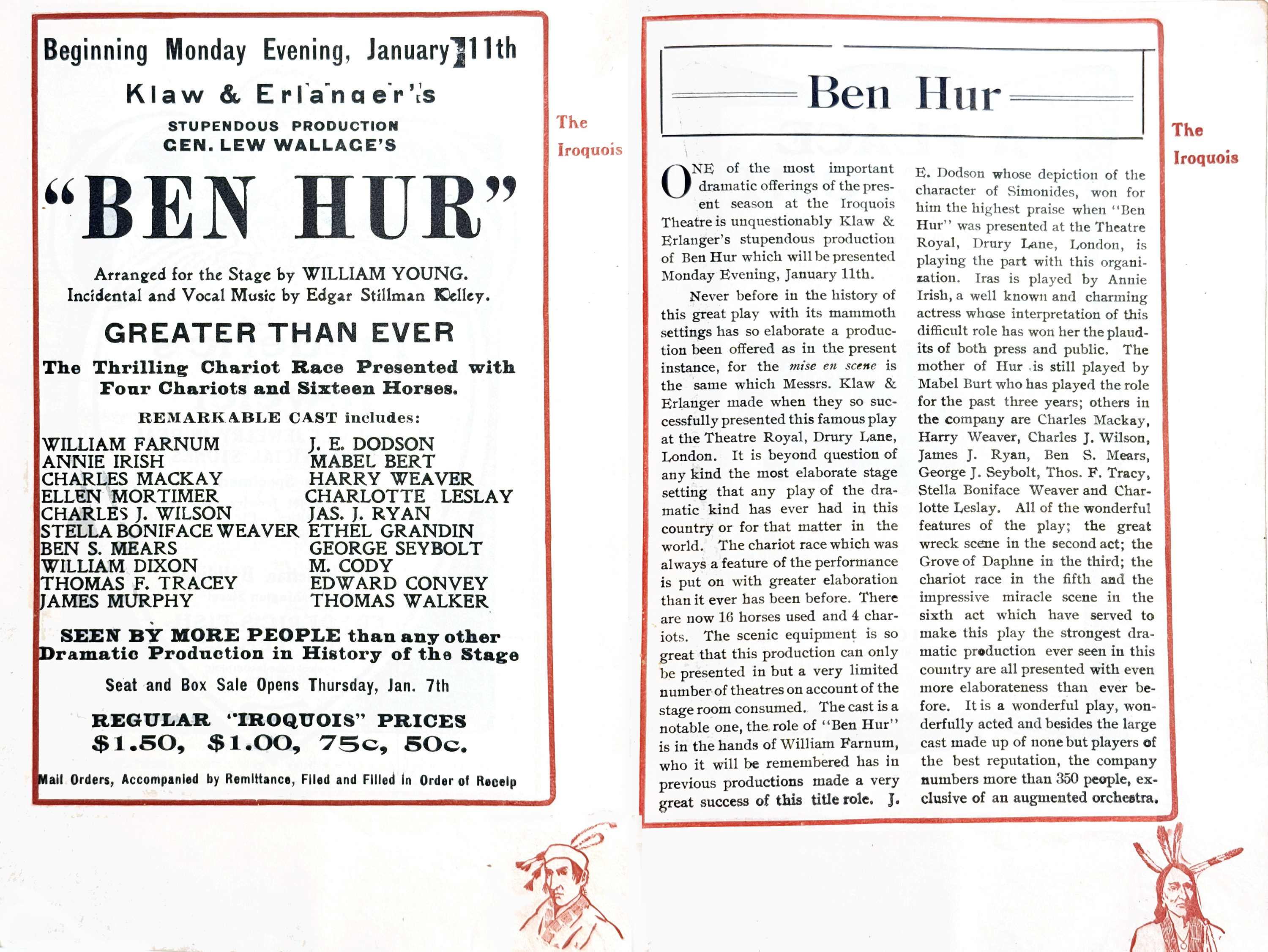 Advertisement for Ben Hur, which was moved to the Illinois Theater