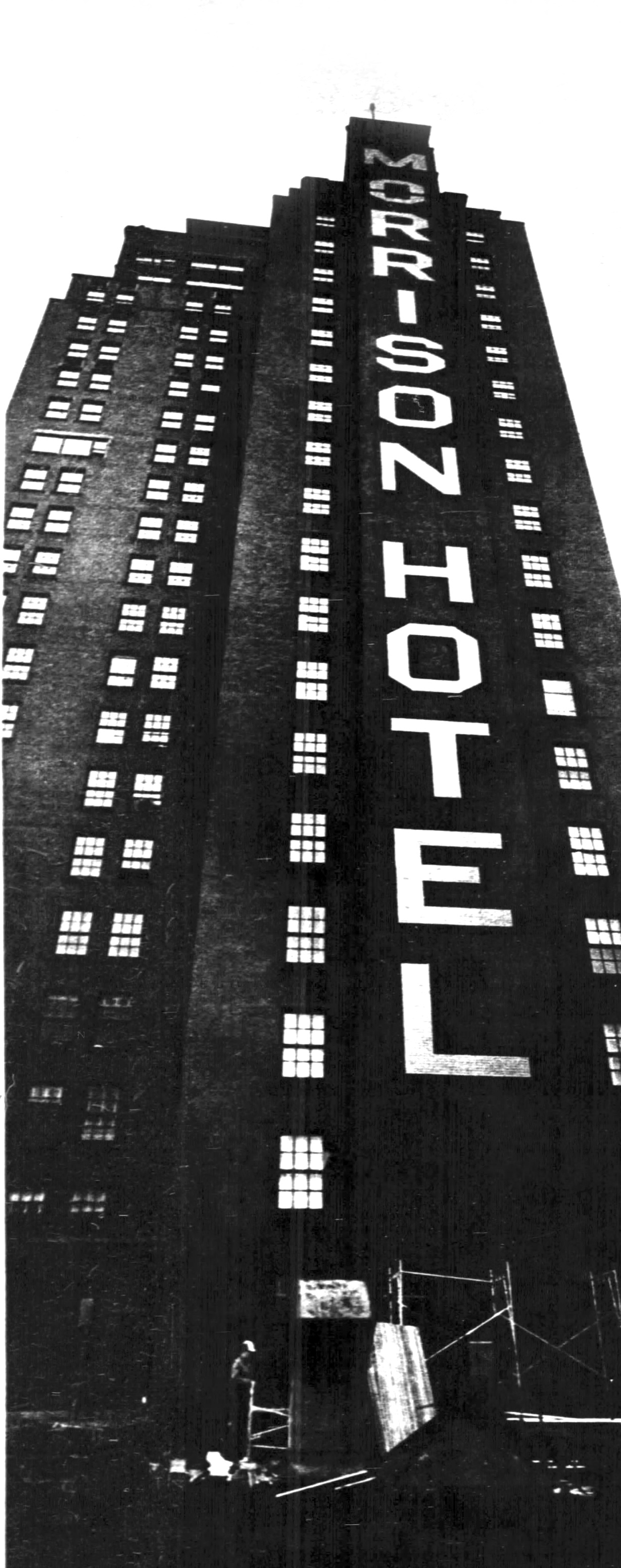 Now the Morrison is doomed, but even in its death it can muster a few superlatives to fling in history’s face. “In addition to being the tallest demolition job in history,” says Fred A. Goldberg, president of the Harvey Wrecking company, “the razing of the Morrison and Hamilton hotels and the old Hartford building will qualify as the largest individual wrecking job ever undertaken in the midwest.” The Hamilton and the Hartford building, along with the Morrison, are condemned to extinction by the First National bank, which intends to erect a new building where the old ones now stand.