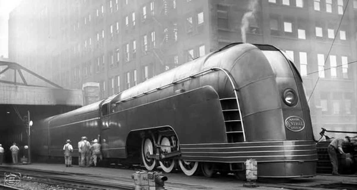 The New York Central System’s new streamlined train, the Mercury, will be placed on exhibition today and tomorrow in the La Salle street sta-tion. The train is to be placed in service between Cleveland, Toledo, and Detroit with a reduced running time of two hours and fifty minutes. Powered by a high speed Pacific type steam locomotive fully streamlined in new design, the train carries seven lightweight full size steel cars. It is completely air-conditioned with the interior designed in modernistic manner.