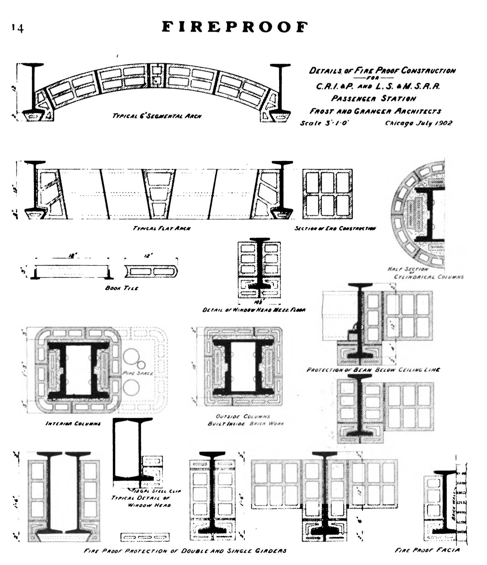 Messrs. Frost & Granger, architects for the Terminal Station, have given their personal attention to designing the system of fireproofing for this work; high-grade porous terra cotta fireproof material was adopted and used throughout the entire building.