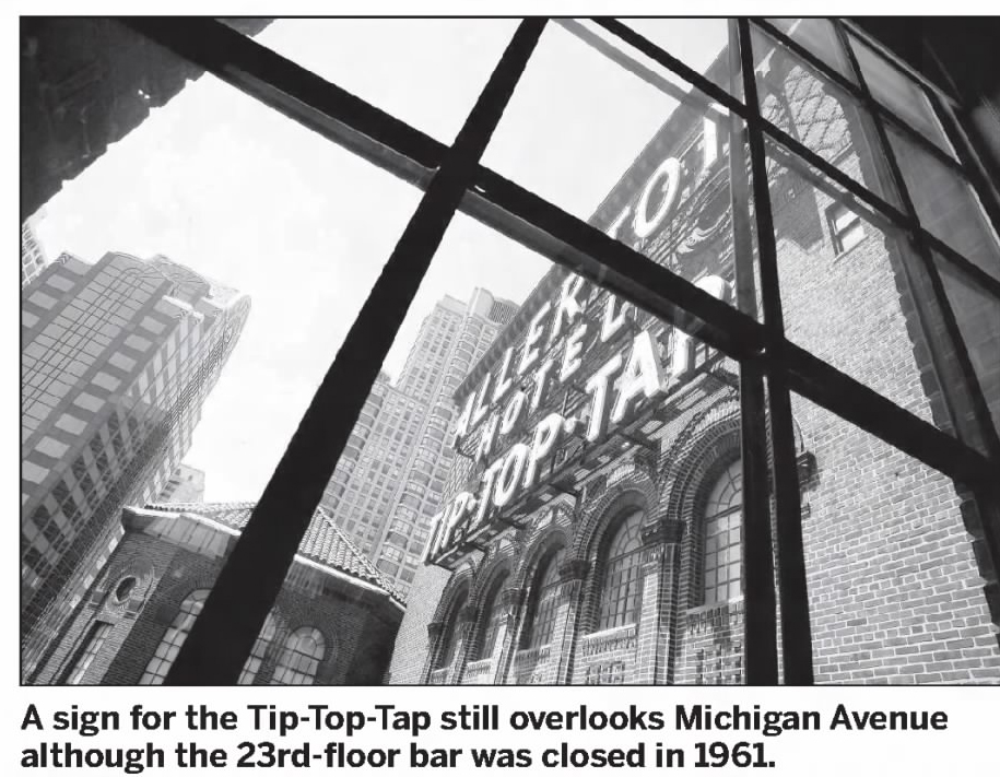 Flames danced above the glass on an 89-degree Monday afternoon. But while the Tip-Top-Tap sign lives on, the 23rd- floor bar, closed in 1961, was not resurrected. “There was a great deal of conversation about that,” said Andrea Mayer, general manager of the Allerton. But the space once occupied by the bar will continue to serve as meeting space, Mayer said, as that yields more revenue.