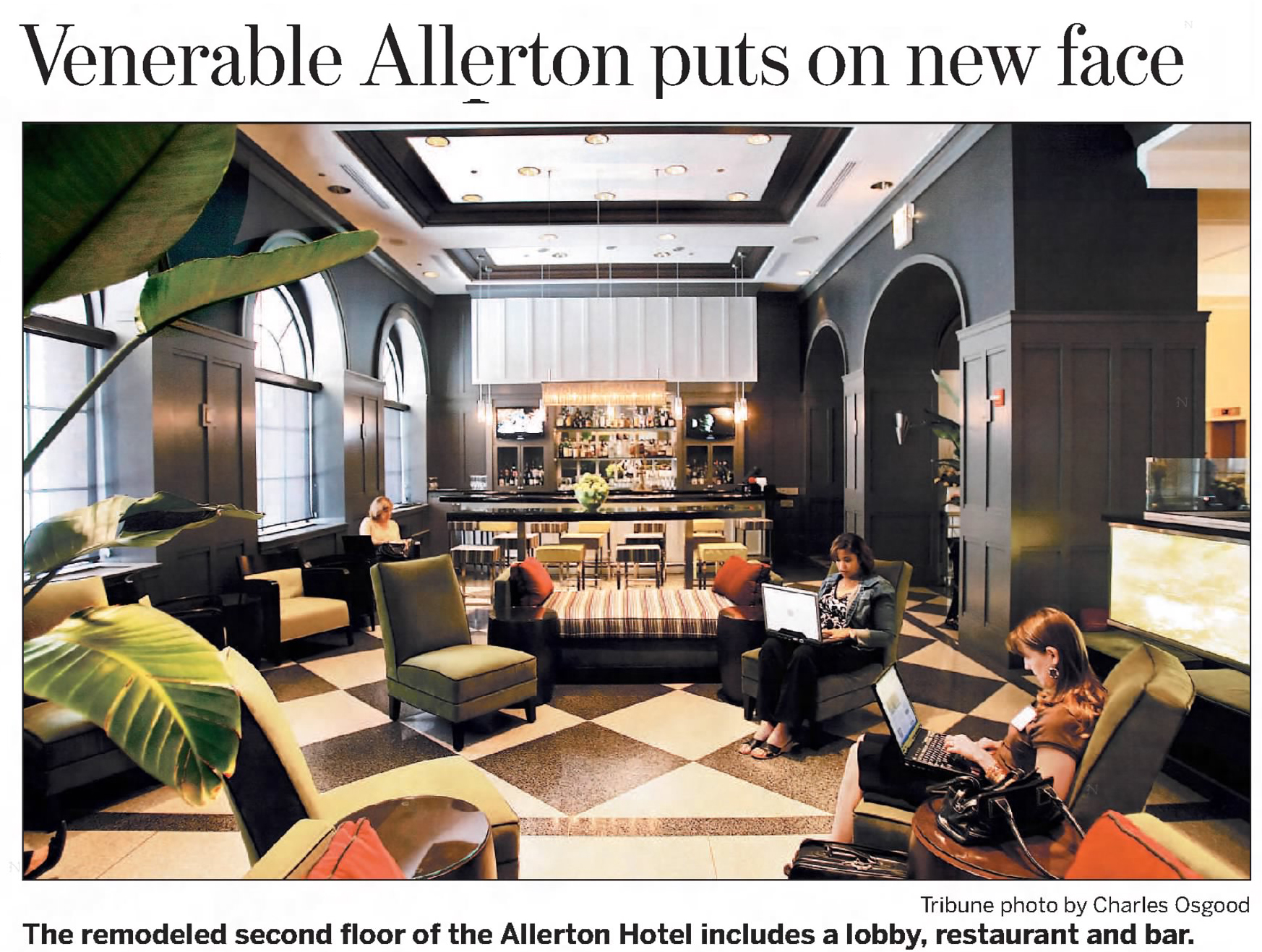 While the exterior of the Northern Italian Renaissance edifice is unchanged, right down to the signs proclaiming “Allerton Hotel Tip-Top-Tap,” the $12 million renovation has transformed the interior into sleekly modern.