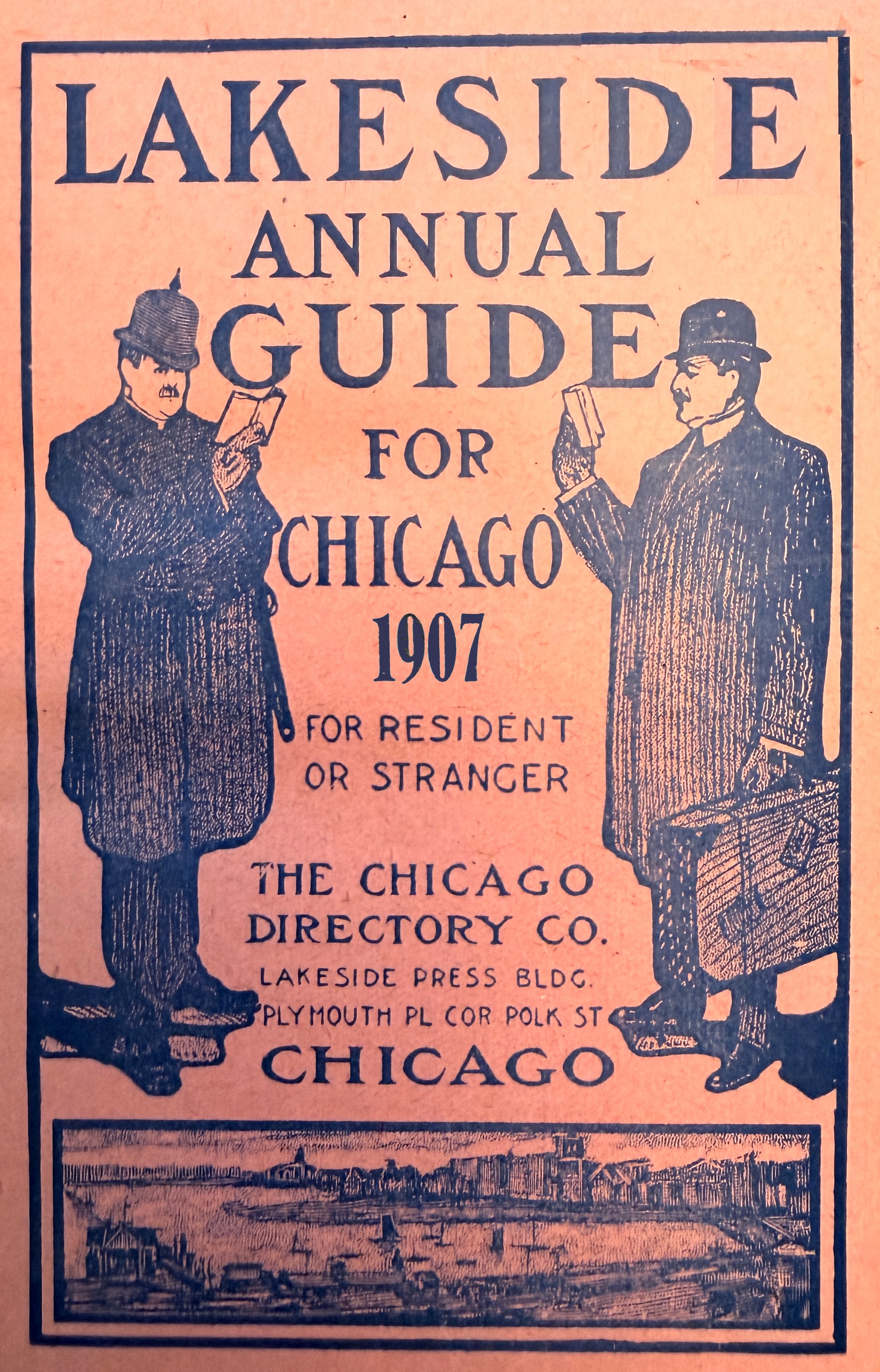 Comparison of the new directory with the first one published in Chicago, in 1844, provides an interesting sidelight on the growth of the city. The first one was compiled by J. W. Norris and published by Ellis and Fergus, job printers. It was a small handbook, containing 1,620 names. The city was described as “a thriving village of 7,000 in-habitants.”