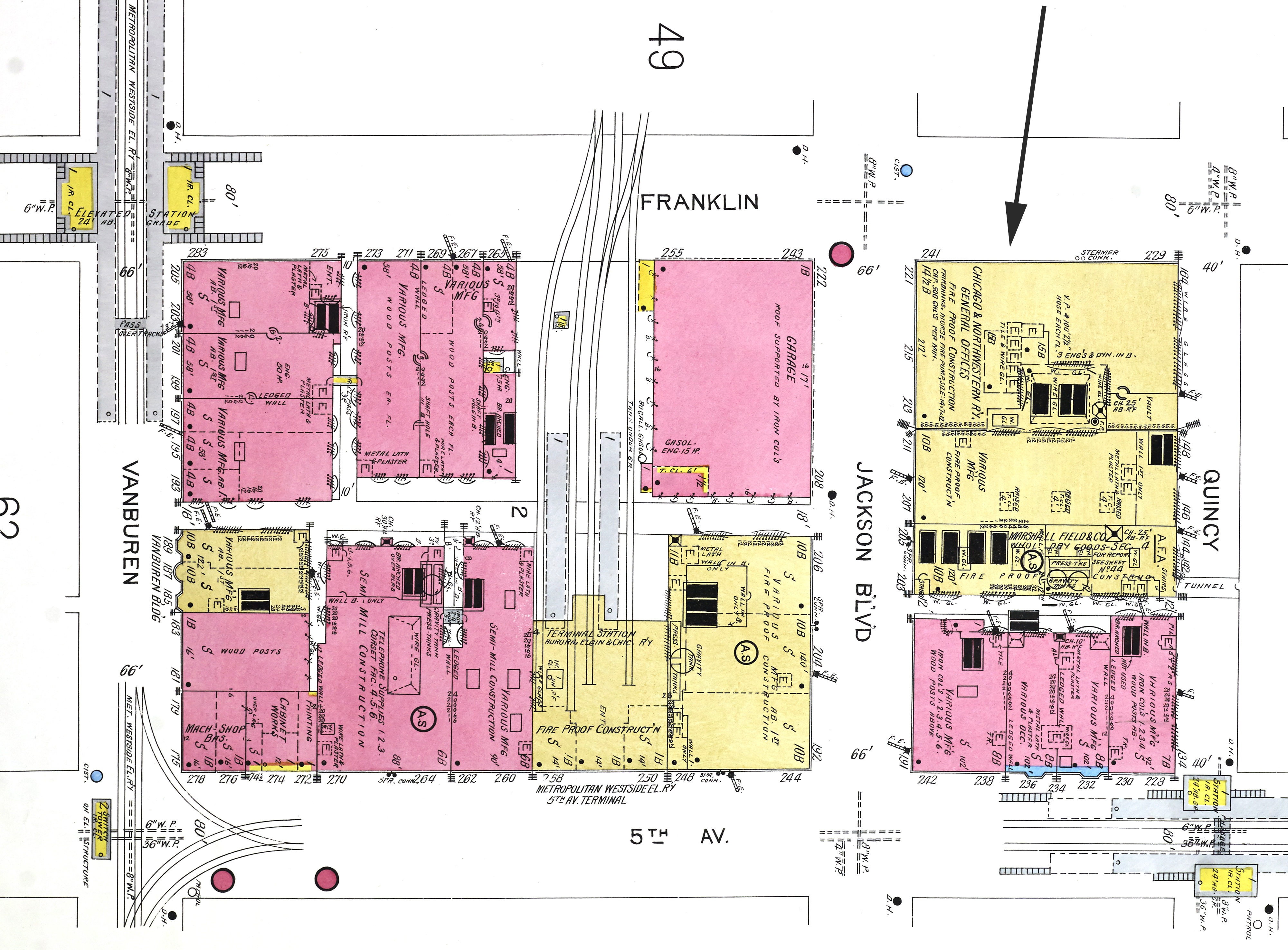Talk of the removal of the Chicago & Northwestern rallway’s general offices to the heart of the wholesale district has some foundation in the fact that the railway company has taken title from the Northern Trust company to the entire west frontage on Franklin street, extending from Quincy street to Jackson boulevard, 166 feet, with a depth of 105 feet. It is occupied by a six-story wholesale building, erected by Conrad Fuerst in 1885 at a cost of $175,000. The conveyance yesterday was for a nomInal amount, “good and valuable considerations,” as it was expressed in the deed. The board of review valued the property last year at $665,760.