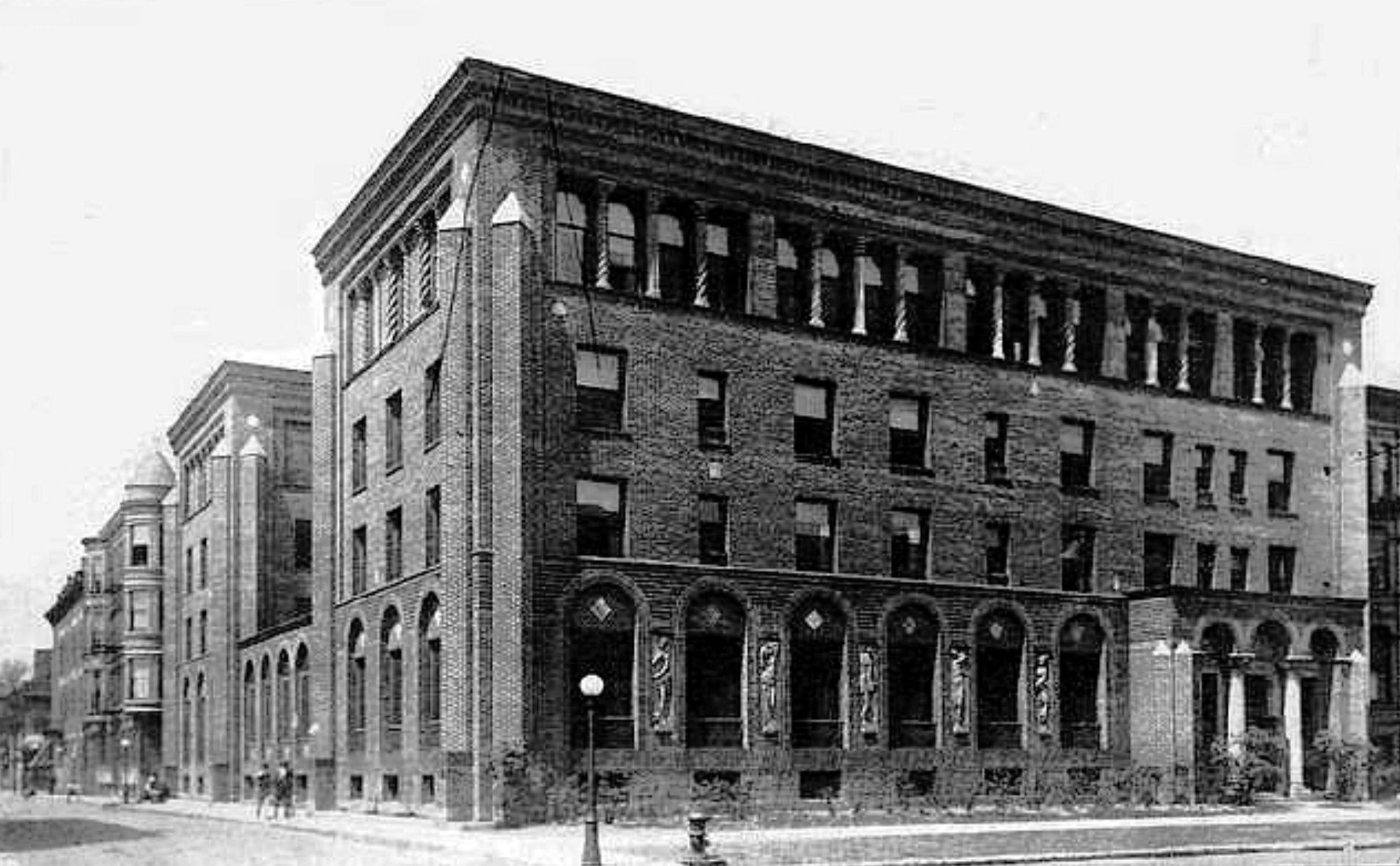 Inserted on the long Dearborn avenue front of the building are five large bas reliefs in white marble, the figures being copies of five of the eight similar de signs which ornament the Fountain of the Innocents in Paris.