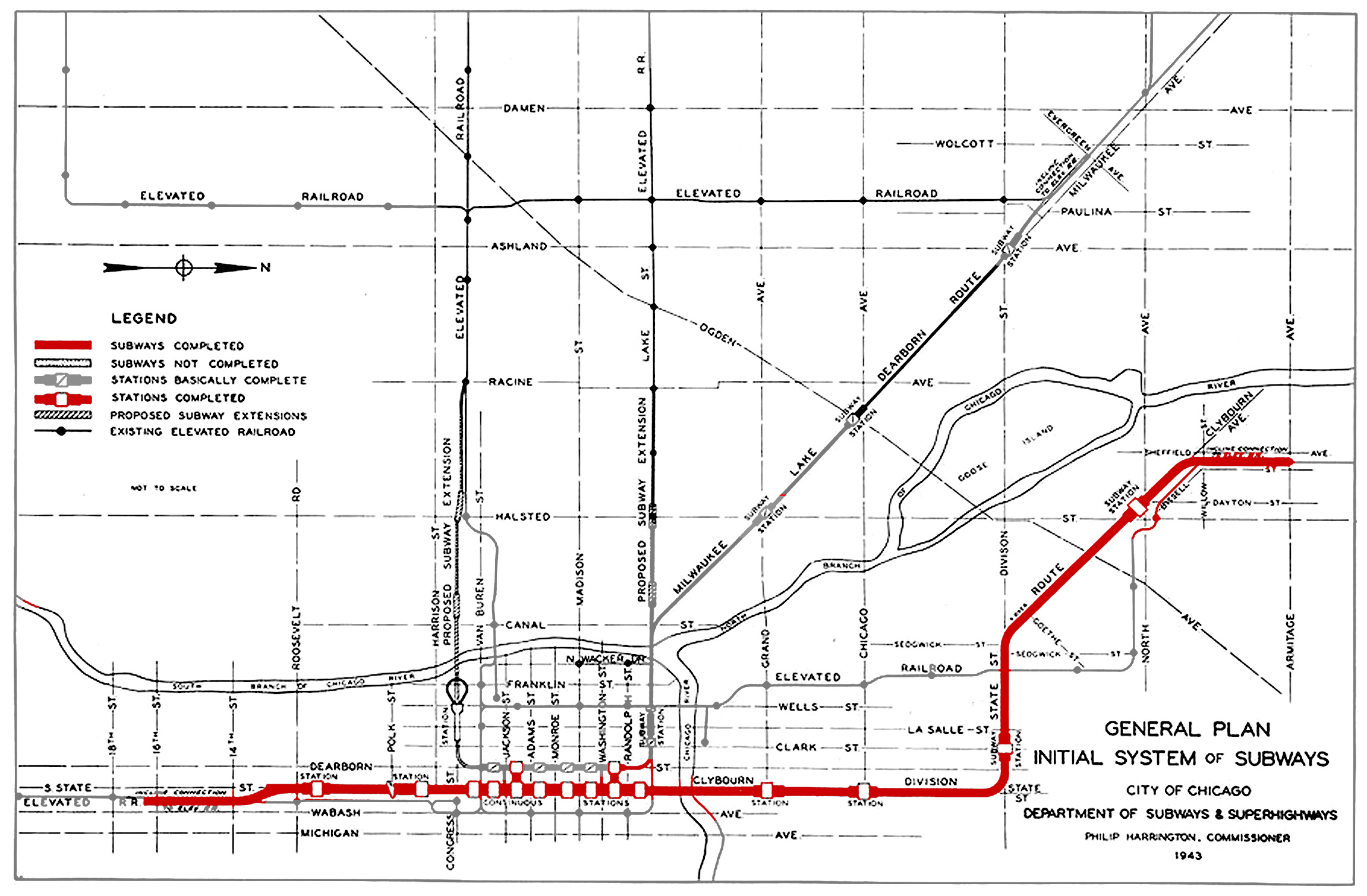 My ancestor, Major Rudolph Frederick Kelker, Jr. served as a traction expert in Chicago from 1907 until after the opening of the State Street subway in 1943. In 1939 he prepared “A Comprehensive Plan for the Extension of the Subway System of the City of Chicago.” It is a grand and detailed document. My question to anyone who knows much more about the history of Chicago transit than I do is: Is this the plan that was used in whole or in part for the building of the State Street subway?